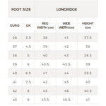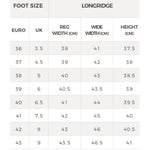 36 (UK3.5), 37 (UK4.5), 38 (UK5), 39 (UK6), 40 (UK6.5), 41 (UK7.5), 42 (UK8) or 43 (UK9)
