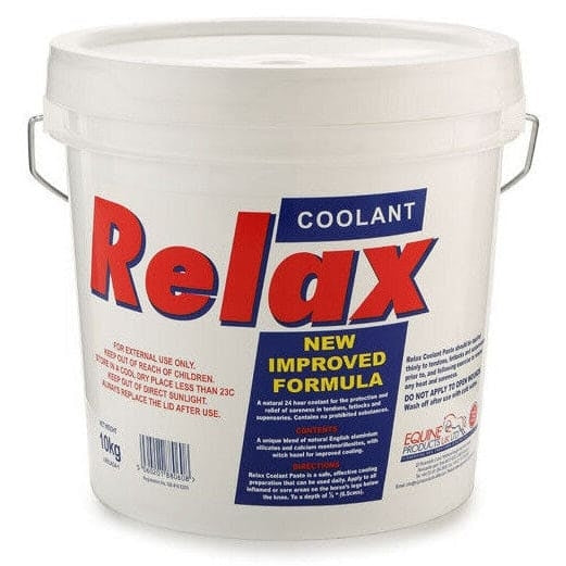 Relax is an ideal coolant for thinly spreading over the legs, following exercise or competition, and is easily washed off with cold water. An entirely natural aqueous clay in a ready to use form, Relax provides a practical solution to constant problems.