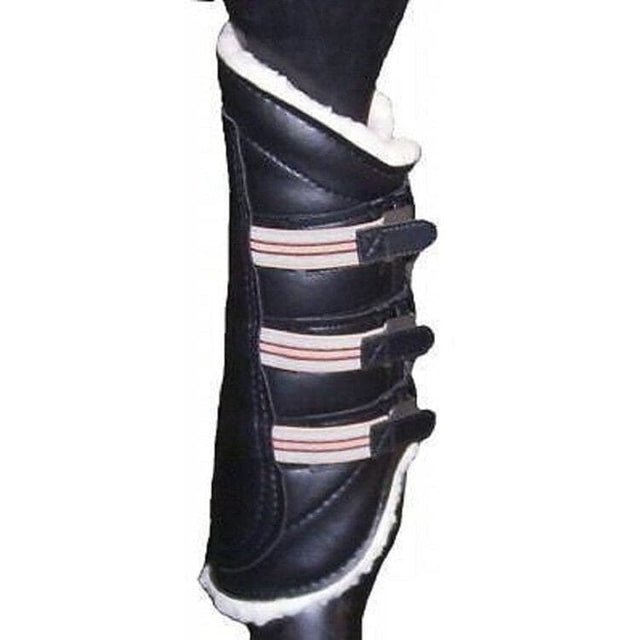 The front boot gives an additional area of protection at the back of the fetlock and has a second layer of 6mm high impact resistant foam in the tendon area to help against the hind hoof over-reaching .