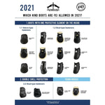 BS BOOT RULES - For Talent Seekers, Newcomers, Foxhunter (effective 24th April 2012 and onwards) in addition to all Age Classes (effective 16th August and onwards) the following criteria must be adhered to for all 2nd rounds, direct qualifiers or finals. The total maximum weight of equipment allowed to be added to a Horse’s leg, front or hind (single or multiple boots, fetlock rings etc) is 500g. All hind leg protections must have a maximum interior length of 16cm an minimum exterior width of 5cm. The inside protection must be smooth, the fixations must be non elastic Velcro type fasteners, no hooks or straps may be used. The rounded rigid part of the protection must be placed around the inside of the fetlock. No additional elements may be used in conjunction with the protection.