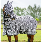 The black and white stripes confuse insects so they steer clear while the breathable mesh fabric prevents the horse from overheating.