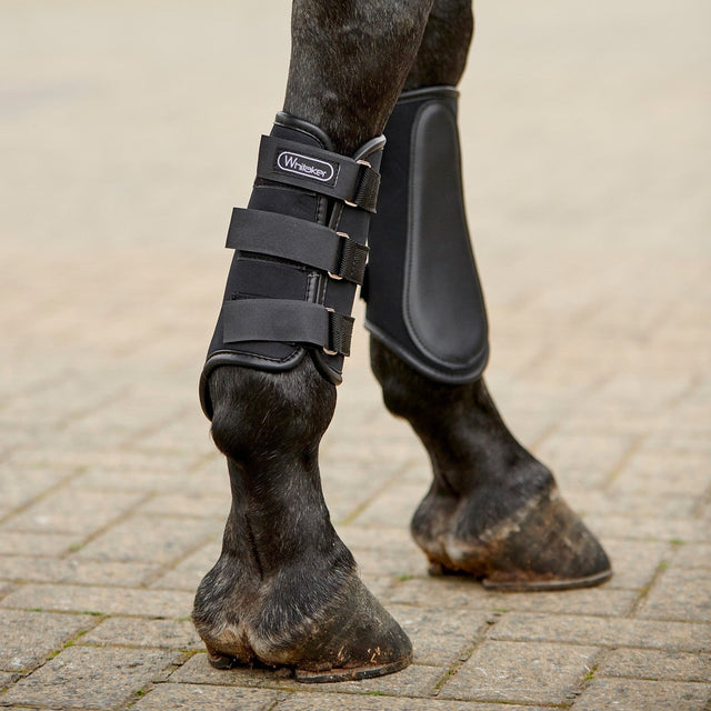 The Bradford Brushing Boots are designed for everyday protection, comfort, and durability. Made from shock-absorbing neoprene, they guard against bumps and strikes with a tough outer strike pad. Three easy-adjustable Velcro straps ensure a secure fit, while cushioned PU binding prevents rubbing during movement. Finished with a woven Whitaker label on the top strap, these boots are ideal for schooling, turnout, or hacking—providing all-round leg protection with a professional look.