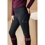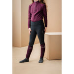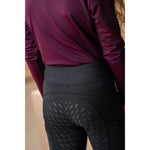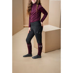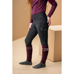 This piece is designed with a buttery sueded outer and a brushed lining that provides warmth while allowing unrestricted movement. The comfortable high-rise design stays securely in place whether you’re riding or working around the yard, while two convenient thigh pockets for your phone add practicality. A matte silicone full seat ensures grip and stability in the saddle, and the anti-bacterial, sweat-wicking, shape-retention fabric delivers lasting comfort and performance.
