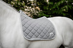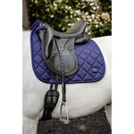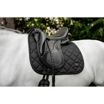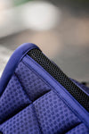 This pad features sleek luxury styling with refined gun metal AA branding. It has a satin finish on top for a high end look and highly breathable 3D spacer mesh underneath for air flow. It it lightly cushioned for comfort, with D ring tabs and girth strap to pad securely in place.