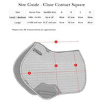 Stylish and convenient way to carry your competition number in discrete clear pockets, without the fuss of attaching separate numbers. Comes with three complete sets of numbers for each side. Pockets are on both sides of the square in order to comply with the new British Dressage requirements. Natural Bamboo lining controls temperature & breathability. Inner layer improves sweat wicking properties. Girth straps with optional inner locking loop to prevent slipping D-Ring straps contoured to give better fit and allow breast plate attachments High wither swan neck design for freedom at the wither. Signature girth protection area for added strength.