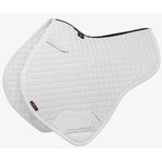 The LeMieux plain cotton Half Square is designed for the competitive rider offering modern style & performance. The more streamline half cut profile is cooler than a full square and less bulky, making it one of the least restrictive jumping pads. With its high wither, elasticated D-Ring tabs and signature teardrop girth protection area this is a very sporting looking pad. Popular around the world for use in competition, especially in hotter climates. These technically conceived pads have high quality fabric structure enabling them to retain shape & resist shrinkage. The premium cotton top side is complimented by new super soft Bamboo lining which absorbs & controls sweat under the saddle and is beautifully comfortable and secure - minimising friction even on sensitive skinned horses. All have the familiar LeMieux high wither and girth protection areas with new locking loops. Contoured elasticated D-Ring straps also feature on many pads.