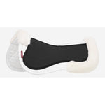 An all-purpose cut half pad, with Merino+ rolls at the withers and behind the saddle. Two perforated neoprene pockets on each side take foam shims to adapt your saddle fit.