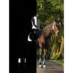 Featuring a reflective fabric panel in the corner and reflective piping around the outer edge, this beautiful dressage saddle pad allows you and your horse to be seen when it’s dark.