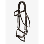 This bridle features an anatomically shaped browband, padded headpiece and noseband that's cut to avoid any pressure on sensitive areas. The D-ring joins the noseband and cheek pieces to sit smoothly against the horses skin.