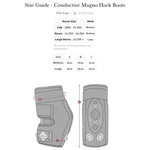 • Conductive Magno Boots are a new generation of magnetic boots. Unique inner liners contain a woven layer of steel fibres directly under 18 powerful 2600 gauss neodymium magnets. The steel filaments conduct the magnetic waves evenly around the lining bringing the whole leg within the magnetic field. This avoids unwanted hot spots from the individual magnets and improves the overall effectiveness.