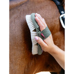 The softest of bristles make this ideal for clipped or sensitive skinned horses while the flexible design allows reach to almost every part of the horse's body.