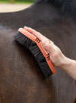 The soft natural bristles make this brush ideal for clipped or sensitive-skinned horses, while the flexible design allows reach to almost every part of the horse's body.