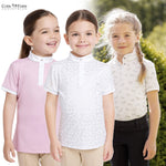 Get ready for their first competition experience in this beautiful quality, smart and comfortable show shirt. Choose from white with a sparkly all-over horseshoe print, a pony print or pretty Blossom pink.