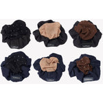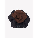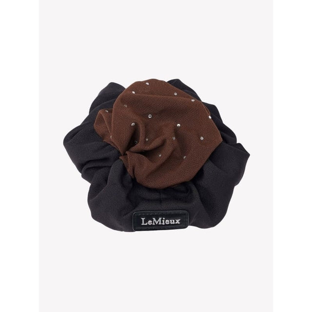 Elegant satin hair scrunchie with a LeMieux logo badge. A sewn-in hairnet adorned with sparkling crystals keeps your hair tidy while you ride, ideal for shows and events. Two hidden claw clips firmly attach to your hair.