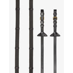 Simple and easy to use, these reins are a popular choice for lower-level riders or fast work. They're complemented by the branded LeMieux Leather martingale Stoppers.