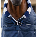Made with a strong and durable 1000D ripstop polyester outer, this stylish stable rug will look and perform well for years to come. The warm padded fleece collar in signature Newmarket stripe prevents your horse from getting a chill around the neck area. The 200g Thermobonded fiberfill gives extended warmth and longer-lasting heat retention, finished with a soft, breathable, moisture-absorbent microfiber lining.
