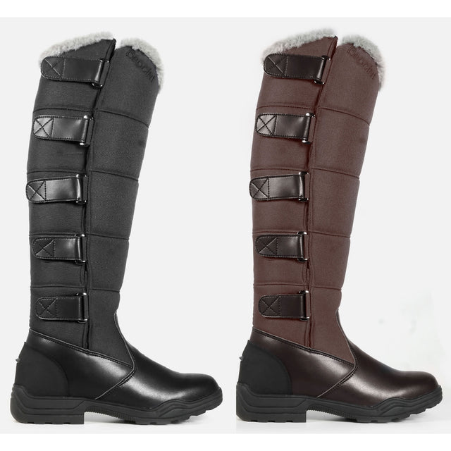 Engineered to withstand the harshest weather, this boot keeps feet warm in temperatures as low as -20 degrees, the densely insulated calf is fully lined with a faux fur and covered in a durable, abrasion resistant Cordura fabric. Featuring a tough rubber sole for exceptional grip in wet conditions and a concealed steel shank for arch support, PU leather foot and Cordura calf are naturally water resistant and very durable. The foot is fully lined in a faux fur for warm, five velcro straps allow for a bespoke and custom fit and the internal gusset stops any draughts, EVA injection moulded TRI-LAYER sole has excellent shock absorbing qualities.