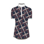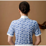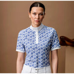 This shirt is made in a technical and functional four way stretch fabric with soft hand feel. The body of the shirt is an all over monogram pattern - choose how bold you want to go! It has a concealed zipper white placket and stand up white collar with magnetic closure. The cuffs on the short sleeve are also white. It is extremely breathable and moisture wicking. UPF 50+