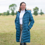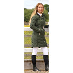 This gorgeous coat features a belt to not only add shape, but to secure the coat, and gold detailing finishes off this stylish item, including a two way front zip and zip to the back to allow the coat to also be used while riding and remain comfortable in the saddle.