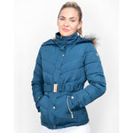 The stunning Cornhill Quilted Coat is engineered with quilted luxury faux duck down panels ensure optimum insulation, by trapping warm air to create a snug feeling. The detachable premium faux fur around the hood and faux fur on the collar to not only look stylish but keeps you toasty in the cold weather. This gorgeous coat features detachable premium faux fur around the hood and faux fur on the collar to keep you toasty and a flattering belt to secure the coat and creates a tailored shape and silhouette. The rear zipped vents allow for this coat to be used easily when riding, so you can look on-trend and be comfortable in and out the saddle. Exquisite gold detailing finishes off this stylish item, including a two-way front zip, press studs, zipped pockets and subtle Coldstream badge to the arm. As with any signature Coldstream piece, you are guaranteed supreme style and performance with this deluxe garment.