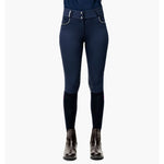 Silicone knee patches provide extra grip in the saddle, and a wide, smoothing mid-rise waistband helps breeches stay securely in place while riding or looking after the horses.