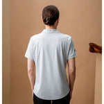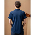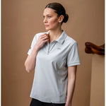 This polo shirt features a clean lined zip placket and self fabric collar instead of the traditional button placket and web collar. It is a modern hybrid of a polo shirt and an equestrian tech shirt. The length is just right for either tucking into breeches, but not so long that you can't wear it loose over tights. The perforated side panels allow for airflow and the fabric wicks away sweat - ideal for hot summer rides.