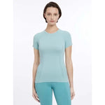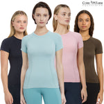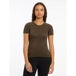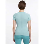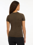 A flattering, body contouring shape, antimicrobial sweat-wicking fabric and short sleeves make this the ideal top for active wear.