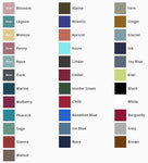 Aqua/Lagoon, Benetton/Navy, Black/Grey, Blossom/Peony, Chilli, Cinder, Dusk Blue, Dusk/Almond, Dusk/Mimosa, Ginger, Slate, Hunter Green, IceBlue/Grey, Lagoon/Aqua, Mimosa/Stone, Navy, Pecan/Stone, Peony/Blossom, Petrol or Sage.