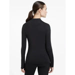 A beautiful mesh stripe on the arm and the side of the body is both cooling and flattering, while a ruched seam on the chest exudes grown-up style. Elevated details like a pretty quarter zip with a chiselled puller, glossy hot fix branding on the back on the neck and subtle branding on the sleeve make this base layer both feminine and glamorous.