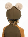 Double the joy for pom pom lovers, with this adorable double pom hat silk with contrasting peak. Made with 360° stretch, it will fit most helmet sizes with a snug and secure look.