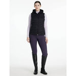 Do it all in this classic lightweight water-resistant puffer gilet. In a step towards sustainability, it's filled with recycled Repreve® down quilting, which is light and warm with a lovely loft for lasting puffiness. Be prepared for unpredictable, chilly days with this water-resistant gilet. Its detachable and adjustable quilted hood provides versatility, allowing you to adapt to changing weather conditions. The luxurious metal finishings are a testament to the excellent quality you can expect from LeMieux. The durable two-way front zip is great for riding and prevents scratches to your pommel. A flattering and stylish cut, zipped pockets, and subtle LeMieux branding make this jacket a must-have for all your activities, whether it's riding, doing jobs around the yard or running errands. Info & CareAvailable in Damson, Black or Navy in Ladies UK6 - UK18 We are one of the largest independent retailers of LeMieux in the UK & a verified premium stockist giving us access to the entire range. Our sales advisors all use LeMieux products on a daily basis so are able to offer expert advice. If you need any assistance in selecting the right item for you or your horse please don't hesitate to contact us.  |  ||