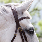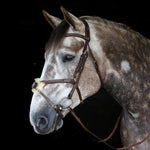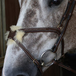 The figure 8 noseband of the Vienna Bridle features a decorative stitch and subtle JW embossing on the noseband and features soft, sheepskin padding on the underside.
