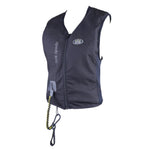 This airbag was specially designed for the USG safety vest models and is simply pulled over the back part of the Flexi safety vest. So it is part of the vest. As with the other EquiAirbag® products, the release strap is clipped to the saddle.