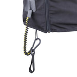On the right rear side of the airbag, the deployment cable with a carabiner extends out. The carabiner simply hooks into the martingale breastplate loop at the front of the saddle and the release cable lies across your right thigh. With this simple process, the EquiAirbag® is ready.