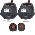 The newest addition to the Cavallo line of hoof boots. Trek is simple to put on and remove and stays securely on the hoof. The upper is made from Pro Mesh moulded TPU and patented RES Replaceable Velcro closure are both exclusive to Cavallo Hoof Boots. The honeycomb design of the Pro Mesh optimizes strength and minimizes weight. The regular sole accommodates a hoof that has a rounder shape while the slim sole fits a more oval shape hoof.