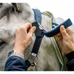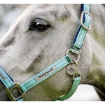 Durable headcollar with quick release cheek clip. Adjustable noseband and a reusable Velcro release point for safe use in the field.