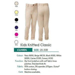 Zip front jodhpur with button closing. Self-fabric knee patch and standard kids fit. Branded Elastic Band inside waist. Machine Washable.
