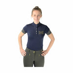 With bi-stretch features to ensure freedomof movement whilst riding, and quick-drying fabricto allow moisture to wick away. Complete with awhite stand-up collar, and 5 crystal buttons alongthe placket. Hy logodetailing on the hem.