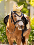 The 100% recycled yarn face veil is crafted in handmade four-way stretch crochet and edged with luxurious double-twist braid. This makes it secure and close-fitting under the bridle. The veil is finished with sophisticated embroidered LeMieux branding.