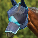 Designed with vision, comfort and durability in mind with ear and nose coverage. Fine mesh allows for full vision and protection from smaller insects with double darts for a superb fit, with nose tassels to help deter flies away from the muzzle and adjustable double touch tape tabs for ease of use. Soft fleece binding and hole to pull forelock through for additional comfort with stretch fleece poll for a secure and comfortable fit. Air stream ear design to allow air flow and extended nose for extra protection. Offering 60%+ UV block.