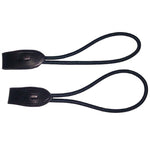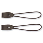 Available in One Sie in Black or BrownMade from webbed nylon rope that loops around the bottom ring and is then attached with a leather billet strap to the top ring.
