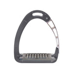 New premium model of the patented, laterally opening Arena stirrups, completely made of certified high-grade anodized aluminium and fitted with a stainless steel tread. Acavallo has carefully chosen and combined the materials used, following detailed research and comprehensive testing. The aluminium, besides giving the stirrup a sleek and elegant appearance, is lightweight and extremely durable, while the stainless steel protects the tread from corrosion, guaranteeing a long life of the product, too. The opening of the stress-actuated locking and release mechanism is located a centimetre higher from the tread to ensure that the foot cannot slip out laterally by mistake and to prevent sand and dirt from delaying the opening action of the arm in case of an emergency. Long holes in the tread prevent sand and dirt accumulations so that the gripping effect is not compromised and a five degree inclination of the tread helps riders to assume the correct posture, relieving tension in their ankles, calves, knees and hips.