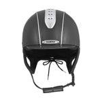 • Four point padded synthetic leather harness with rear lacing adjustment, lined with brush nylon for ear comfort pad compatibility.