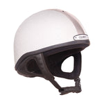 • Low-profile jockey skull helmet with a sanded and painted finish.