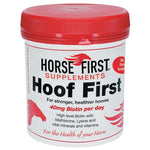 Product Overview Hoof First unique formula contains high strength Biotin with all the essential vitamins and minerals to produce a healthy hoof. It is well known that Biotin will grow horn but at HORSE FIRST we want to give you more, a strong, healthy hoof with continuous growth. Hoof First grows hooves which are better for your farrier to work with, and fights problems such as thin soles, cracked, chipped or weak hooves, contributing to lost shoes which are costly. Why Choose Hoof First?- 40mg Biotin per serving.