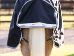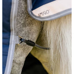 Designed for comfort and freedom of movement, this rug features the Surefit Neck design with a secure V-Front Closure, a single leg arch to enhance mobility, and two crossed surcingles for stability. A waterproof tail flap and PVC wipe-clean tail cord provide additional coverage and extra security is optional with leg strap loops.