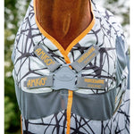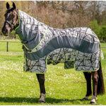 Taking inspiration from nature, the Horseware Amigo® 3-in-1 CamoFly Fly Sheet (0g Lite) incorporates a unique camouflage print within its lightweight, UV-protective and innovative design to elevate fly busting to a brand new level! Taking inspiration from wild zebra coat markings, we've created a rug pattern to camouflage your horse from irritating bugs and flies. Research suggests that the zebra pattern confuse flies, acting as a natural deterrent. So, we've created a unique bespoke monochromatic design that pays homage to this principle, with layered black lines on a grey background to create an optical illusion in a fly's eye. As the pattern breaks up the horse's shape, insects struggle to identify your horse as a target and cannot figure out where to land - confusing for flies, but offering clarity on a brilliant fly rug choice for you!