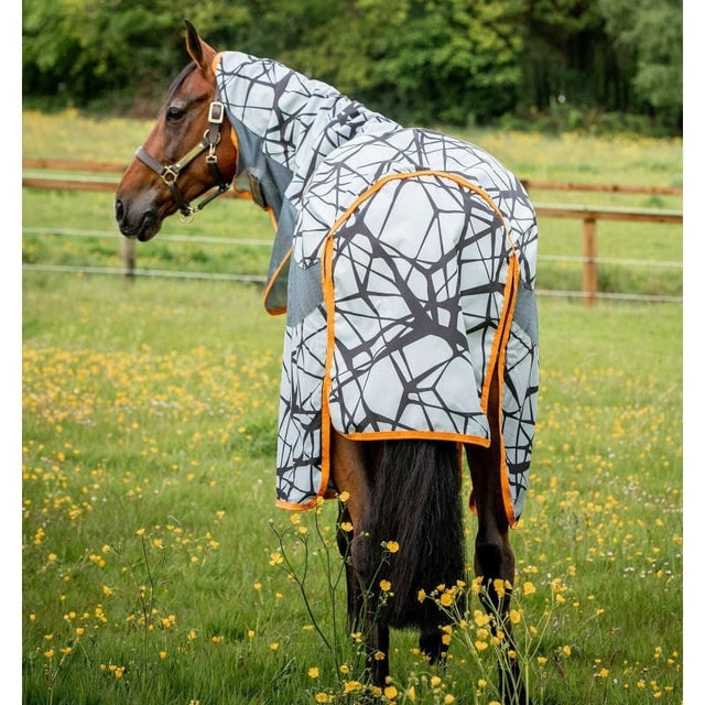 A detachable hood offers continued protection, and the disc front closure, deep cut, shine-enhancing shoulder, mane and tail lining pay further attention to your horse's comfort and the wipe clean tail cord gives an easy clean. This stylish fly rug is a fantastic addition to your horse's wardrobe in your battle against flies and biting insects.