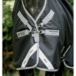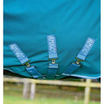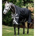The resilient 1200D polyester waterproof and breathable outer will keep your horse dry, even in the toughest of weather conditions, and the high-cut neck design offers a close fit, paying attention to reducing wither pressure with our signature V-Front Closure system which allows your horse freedom of movement to graze without restriction. The front and rear leg arches enable your horse to move freely while keeping the rug securely in place, with additional belly coverage and three cross surcingles.