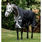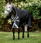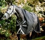 The secure V-Front Closure system allows for freedom of movement, while the unique front and rear leg arches enhance mobility. Three crossed surcingles and optional leg strap compatibility help keep the rug securely in place, and the waterproof tail flap with a PVC wipe-clean tail cord provides additional coverage and security.
